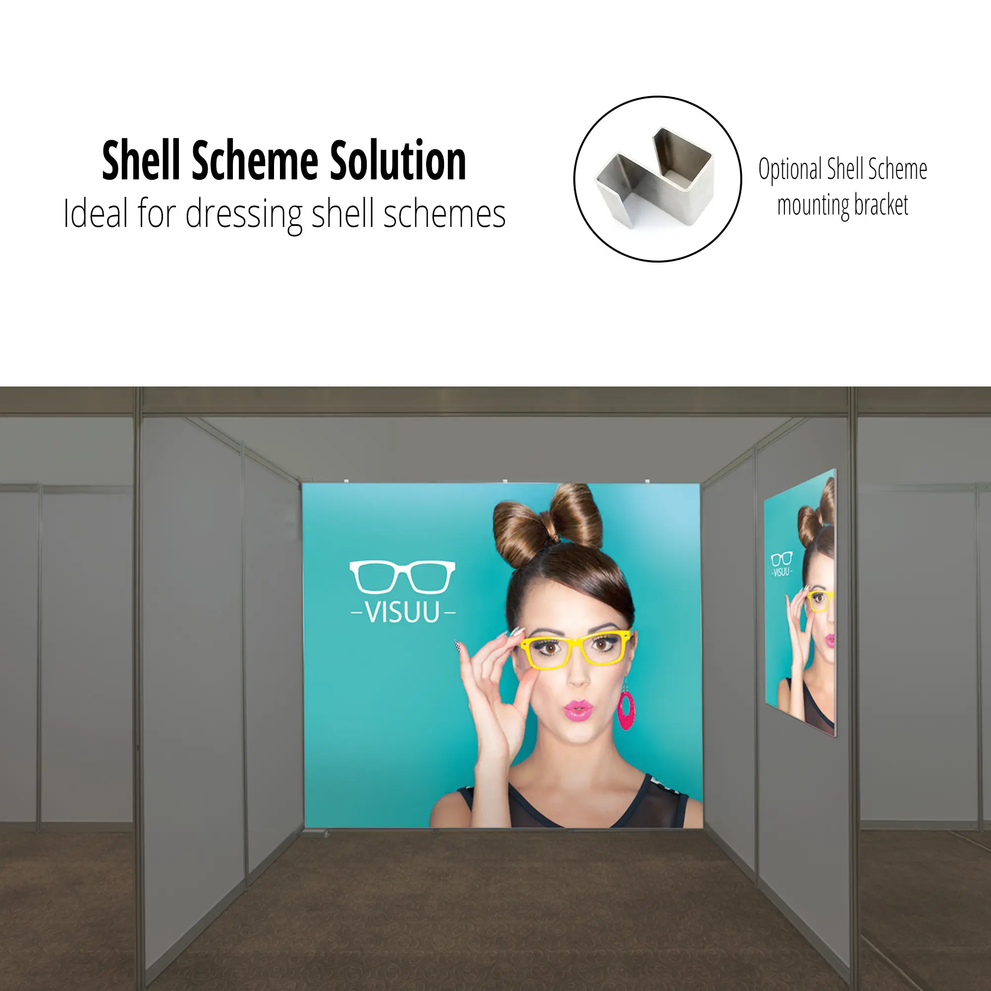 Revolutionise the way you create your shell scheme displays with our Quick Fix Shell Kit. This easy to assemble, slimline (20mm) aluminium frame, whilst designed to be wall-mounted, can also be mounted to a Shell Scheme using our cleverly designed Shell Scheme Mounting Bracket.